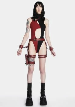 DARKER WAVS Modulation Oxblood Leg Harness With Wrist Cuffs