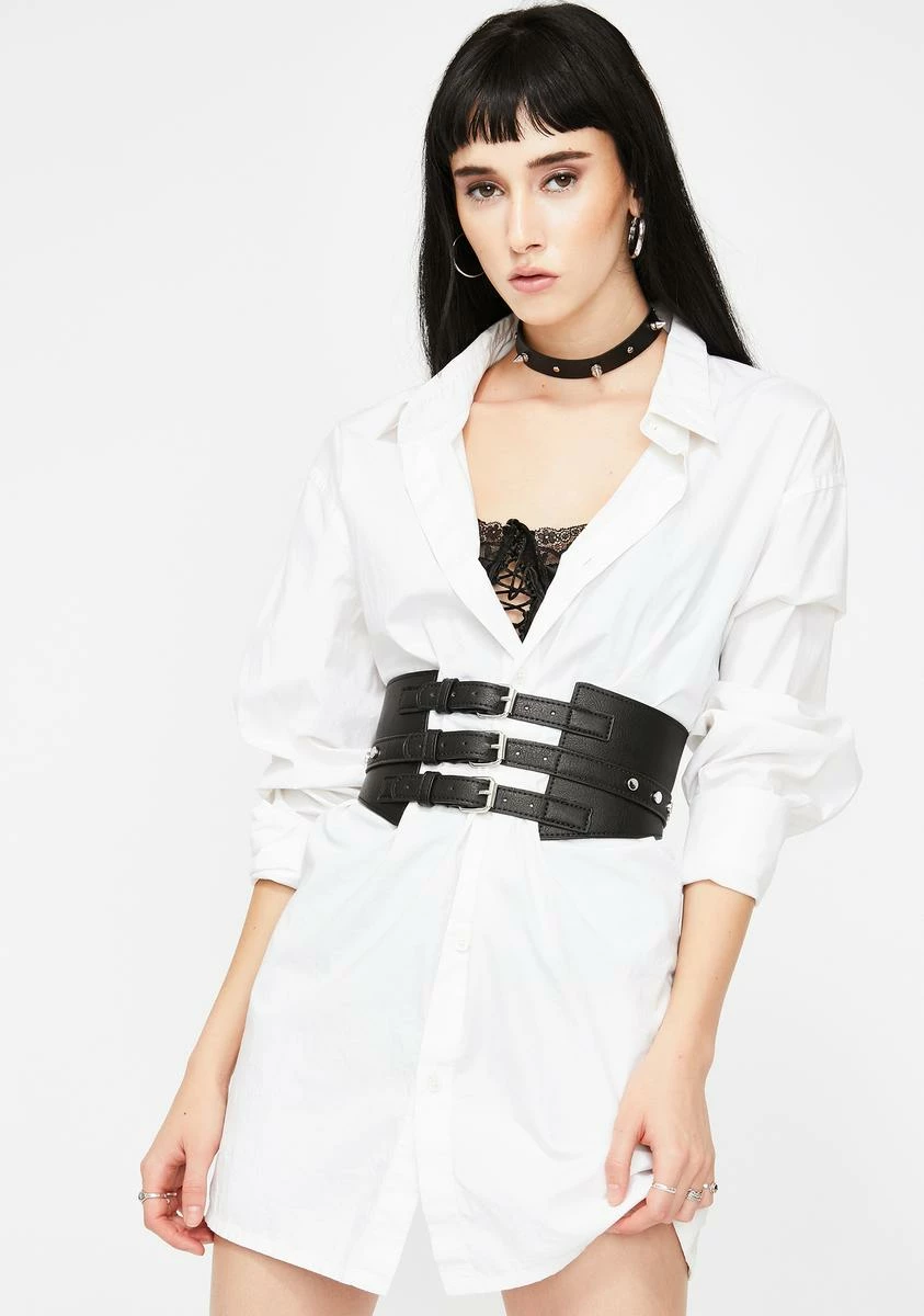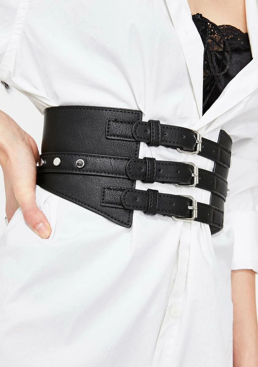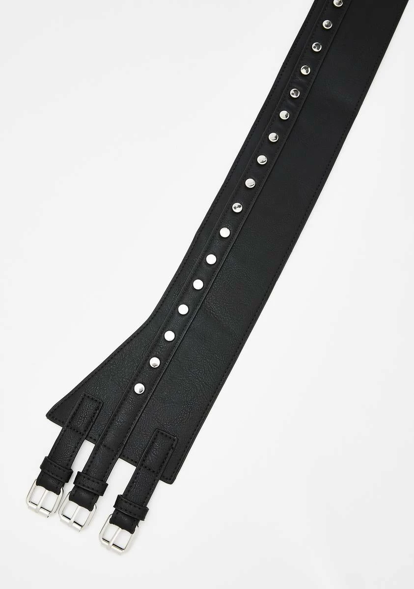 cuz ur always true to whatâs you, bb! Stay looking sikk wearing this chic vegan leather studded belt with three mini front buckle clasp closures.