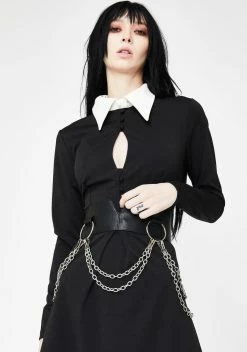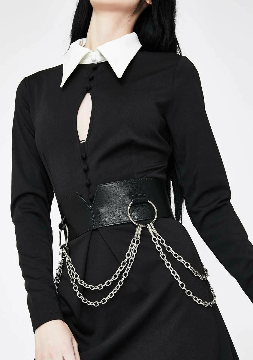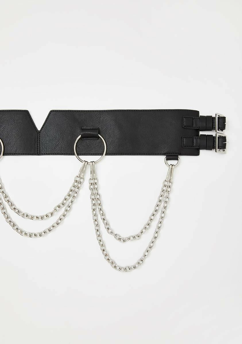cuz youâre unholy. Give âem Mercy vibes in this vegan leather waist belt that has detachable chain hardware, large O-ring details Nâ adjustable buckle closures on the back.