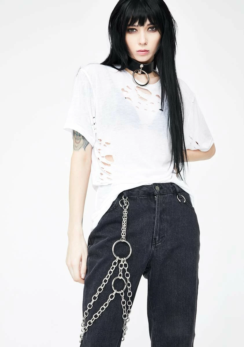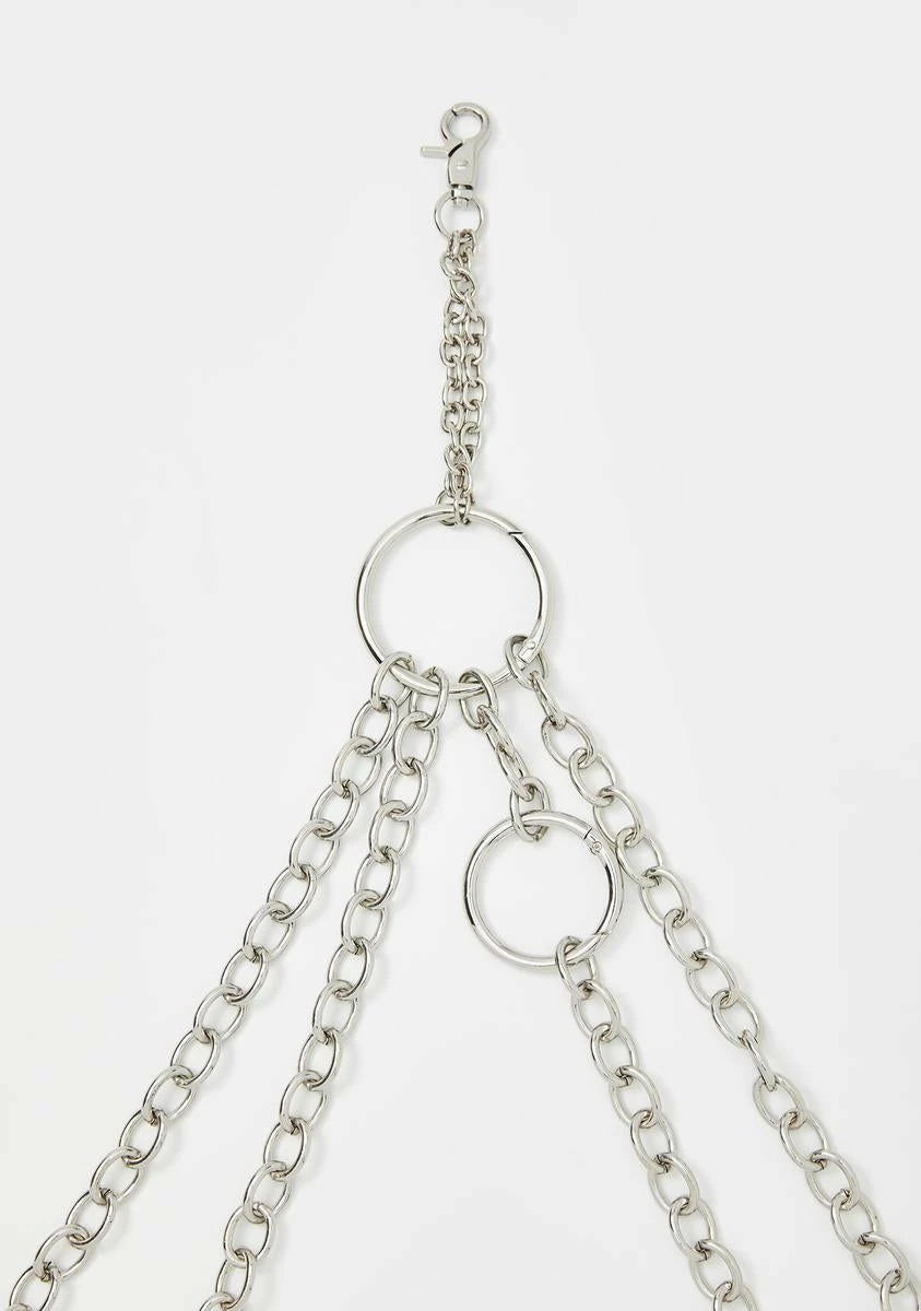 cuz theyâll never break free⦠This chunky chain leg harness has a layered construction, O-ring hardware, and a clasp closure.