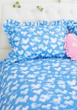 sent from above! These standard size pillow cases come in a pack of two with ruffle trim and a heart-shaped cloud print all over.