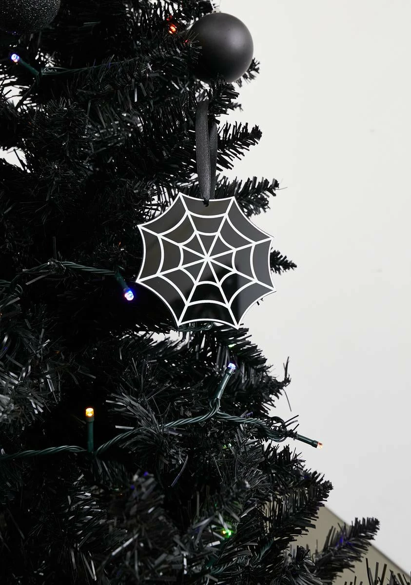 keep it crawlin’ for the night. This diecut acrylic ornament has a ribbon hanging strap and a spider web design.
