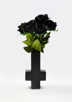 cuz your green thumb is goth. Show your love of the darkness and plants with this ceramic vase in the shape of an upside down cross. 8.75″ H x 4.75″ W.