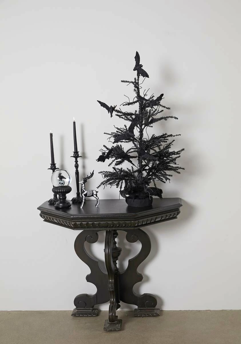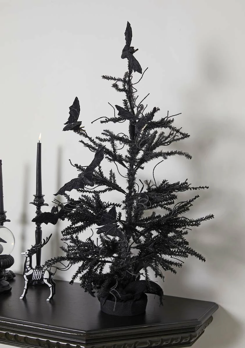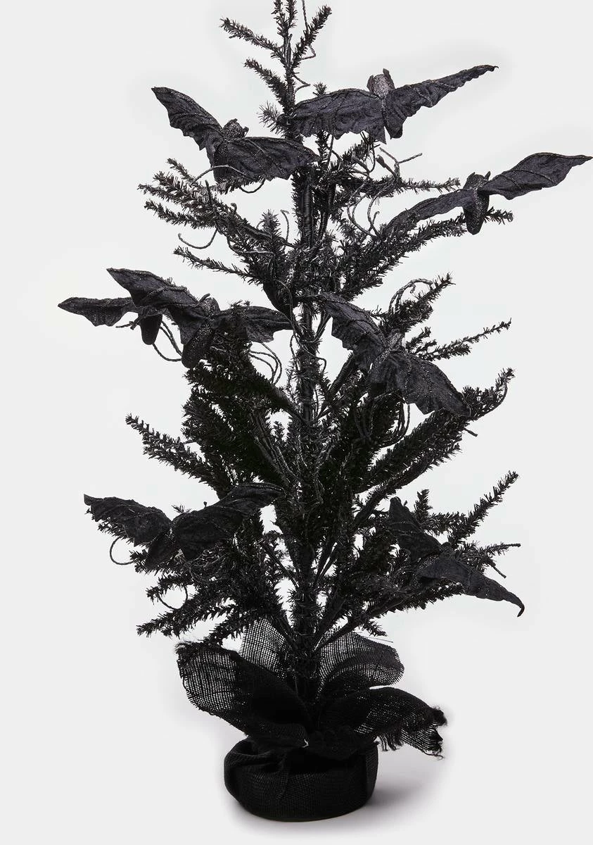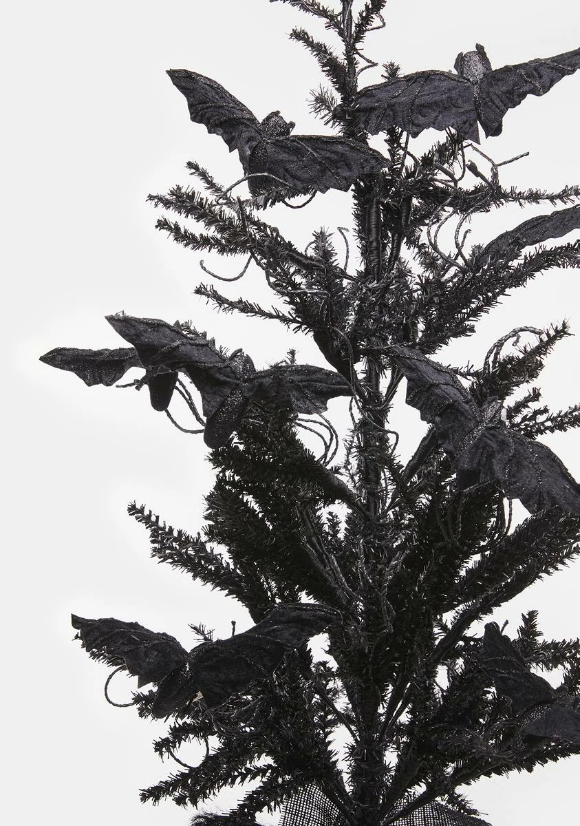 ’tis the most spooky time of year! This artificial tree has sparkly bats all over and a woven base.