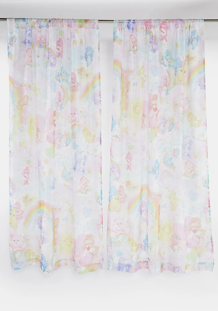 cuz their world is full of love and hugs! Your day is a bit brighter with this set of two sheer chiffon curtains with a watercolor Care Bears print and a rod pocket for hanging.