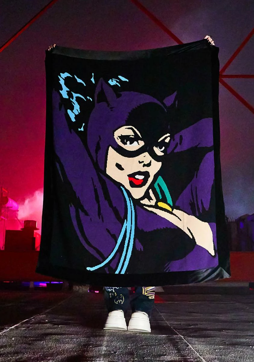 Dolls Kill X DC Purrfect Crime Intarsia Throw Blanket