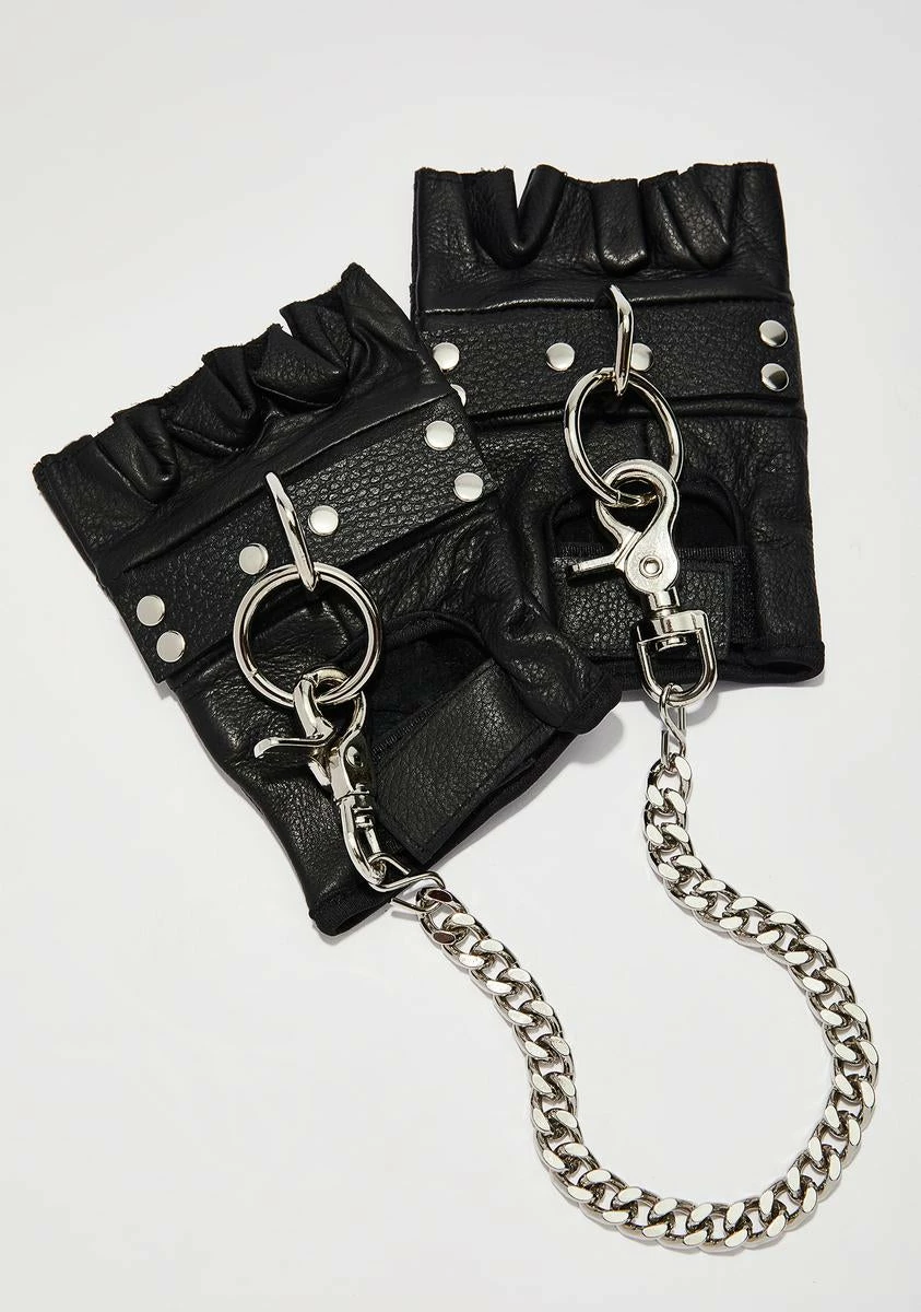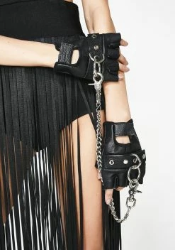 cuz they donât want to lose you. Break free with these vegan leather fingerless gloves that have a detachable chain detail.