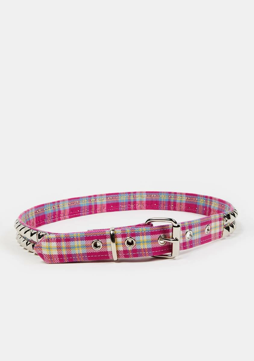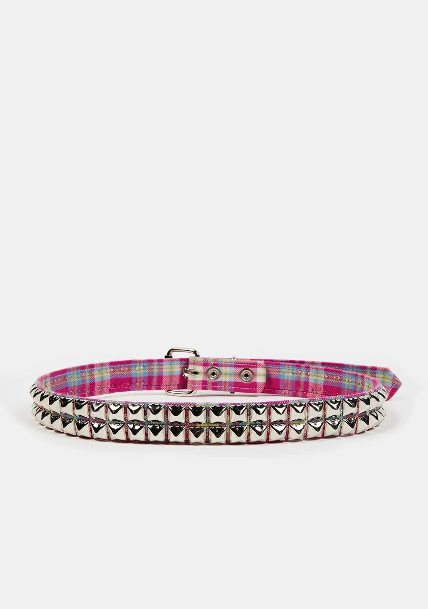 Funk Plus Pink Plaid Belt With Pyramid Studs