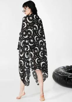 perfect for all your moon-bathing needs babe. Stay out of the sun in this mystical sarong that has a celestial print all ova Nâ can be worn as a scarf or wrapped around ya waist.