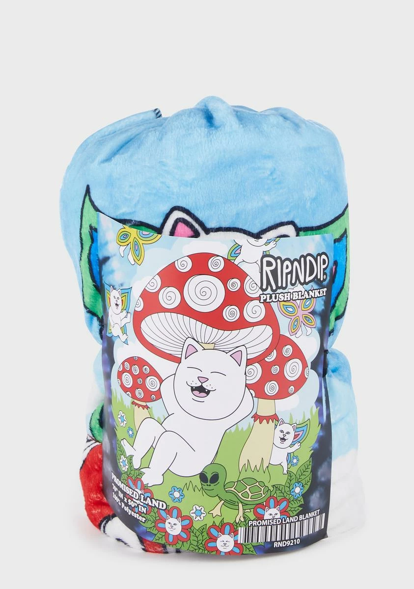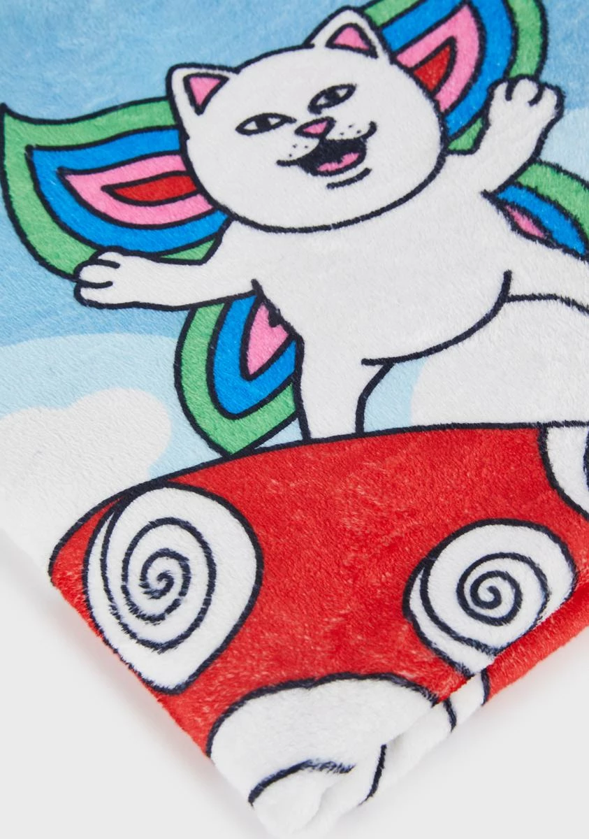 cuz you can relax here. This blanket has a soft construction and a graphic of Nermal in a psychedelic forest.
