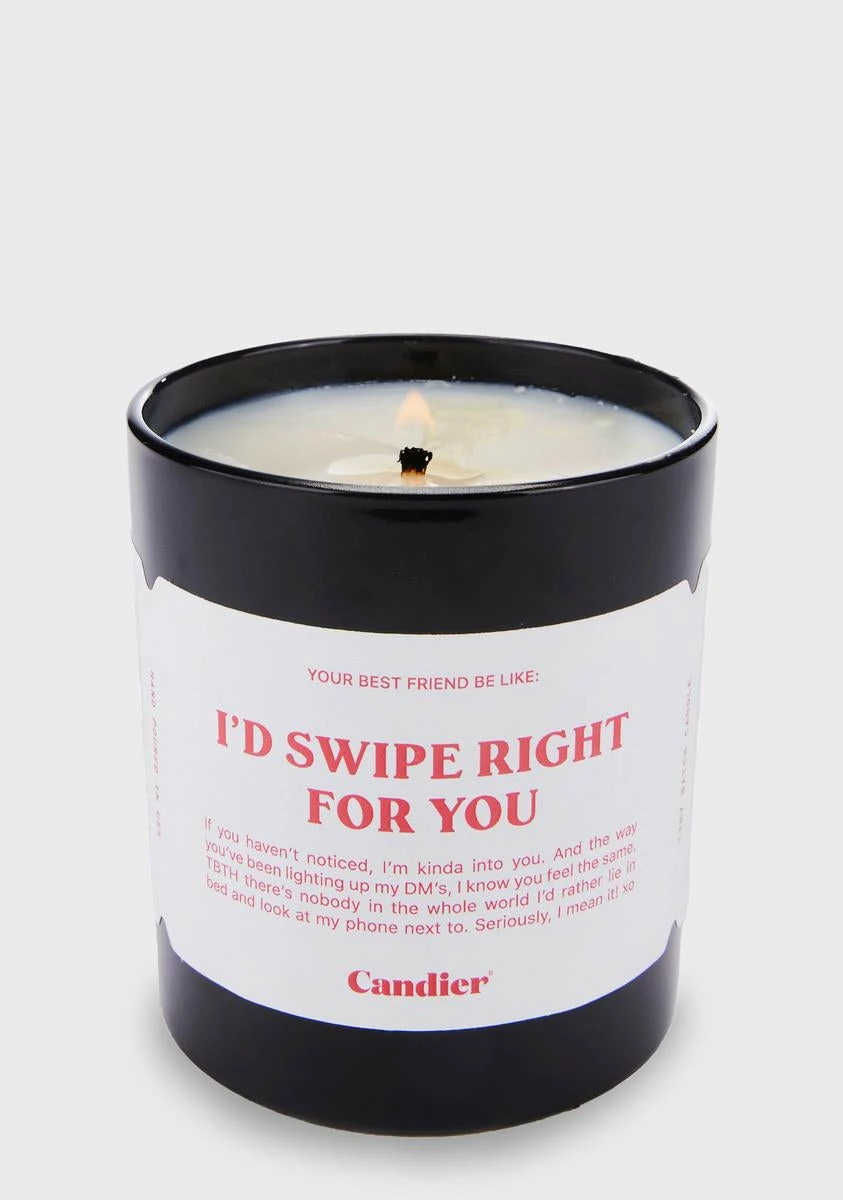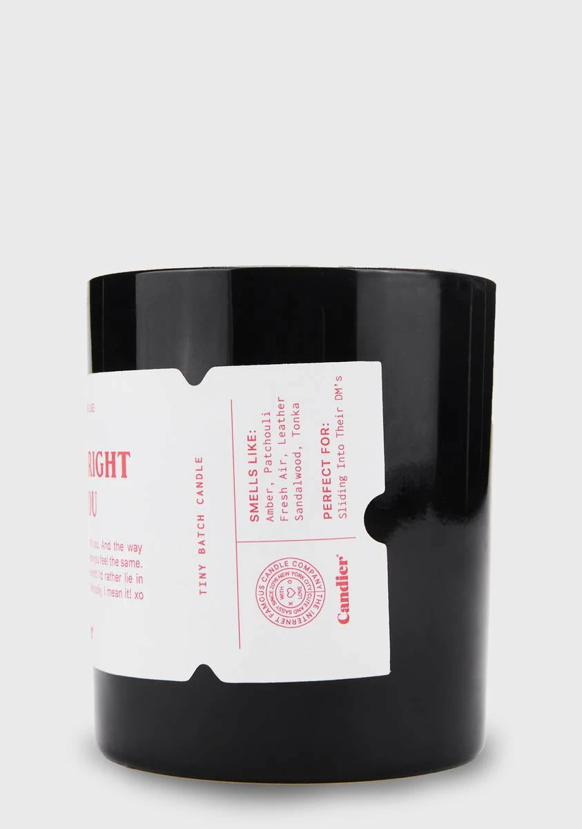 got ’em sliding in the DMs! This candle has a natural soy wax construction, an amber, patchouli, leather, and sandalwood scent, and burns for over 60 hours.