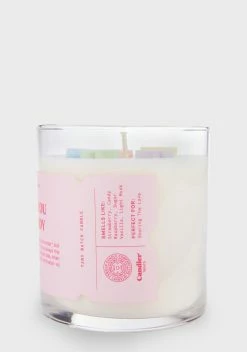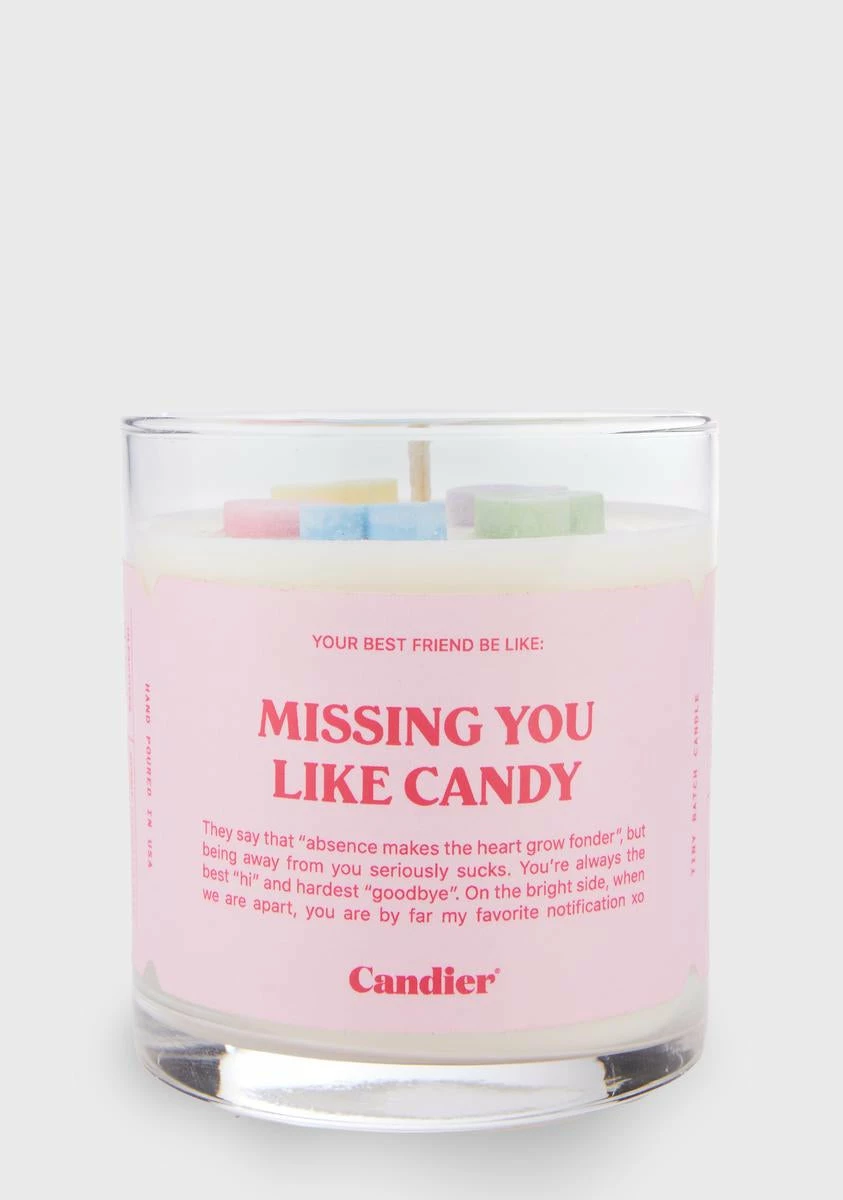 got ’em waiting with bated breath! This candle has a natural soy wax construction, a candy, strawberry, raspberry, and sugar scent with light musk, and burns for over 60 hours.