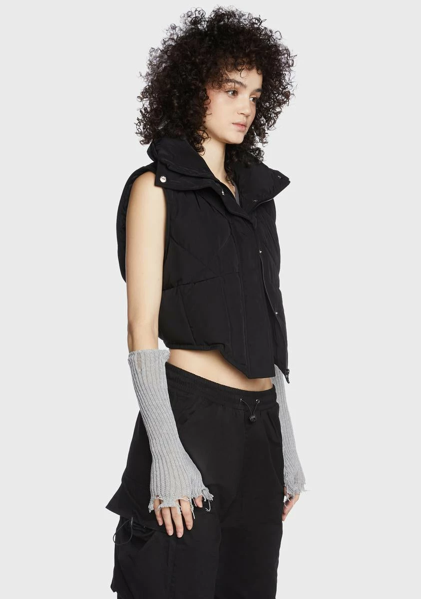 cuz stay warm. These gloves have a stretchy knit ribbed construction and a distressed look.