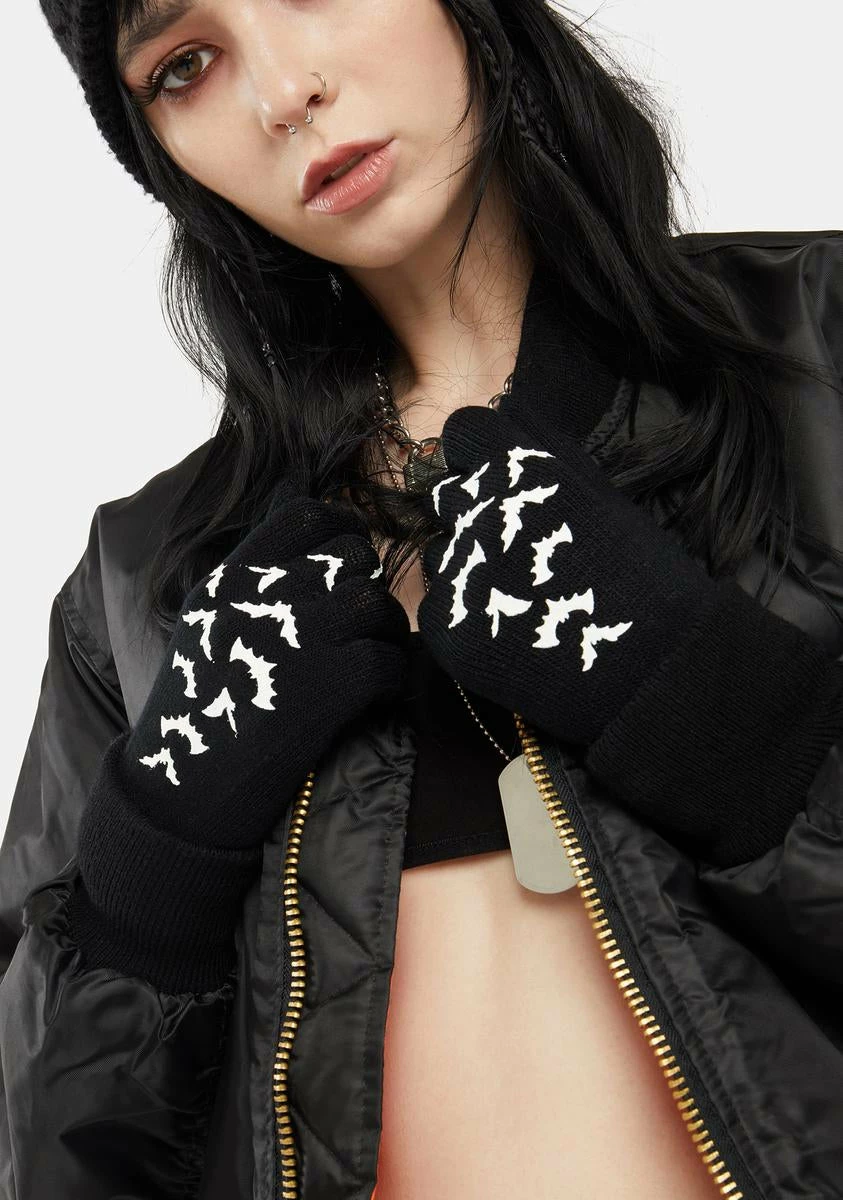 Too Fast Fly Me Bats Knit Gloves