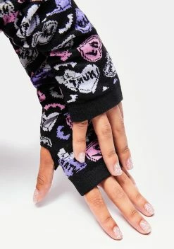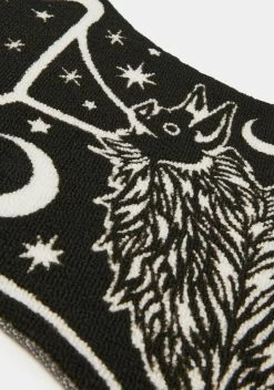 let’s hang out! This rug has a heart-shaped design, a bat graphic, and a soft construction.