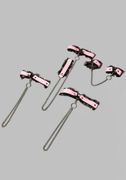 cuz you are one bad babe. Look sikk in this body harness that has a vegan leather construction, O-ring hardware, spiked detailing, detachable chains, adjustable shoulder straps, and buckle closures.
