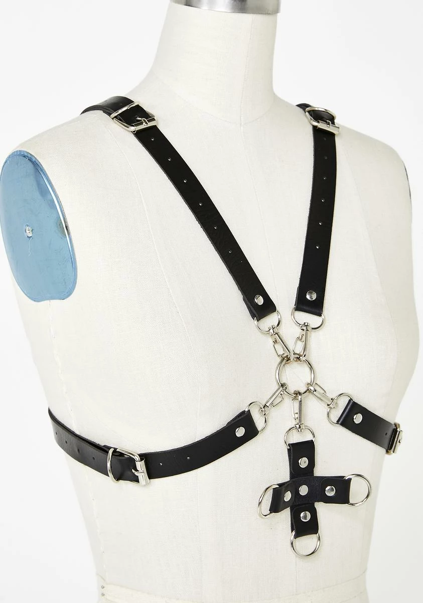 cuz you been up to no good babe! Confess all your sinz in this dope harness that has a detachable lil cross charm Nâ adjustable buckle straps all ova.