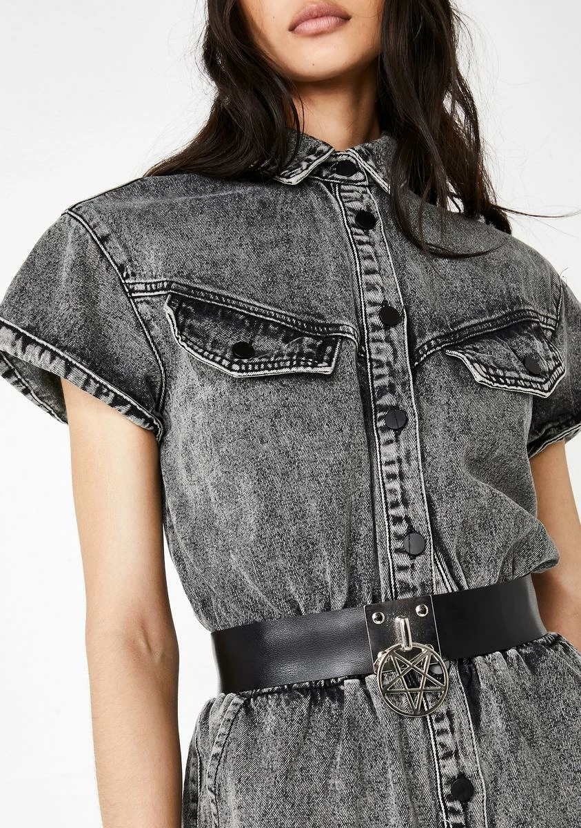 cuz you make your own commandments. Have âem worship you in this wicked waist belt that has an adjustable buckle closure and a pentagram charm.