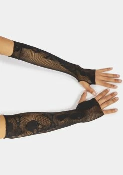 cuz you live life to the fullest. These arm sleeves have a sheer fishnet construction and skull and crossbones designs on the front.