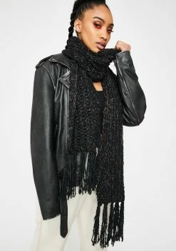 will give ya warm fuzzies, bb! Beat the cold with this xxxtra cozy scarf that has warm ribbed knit construction and tassel details.