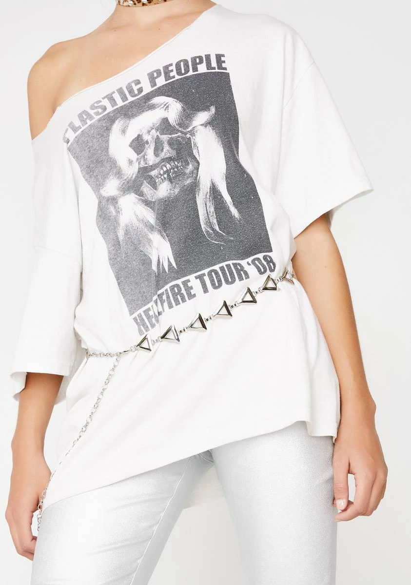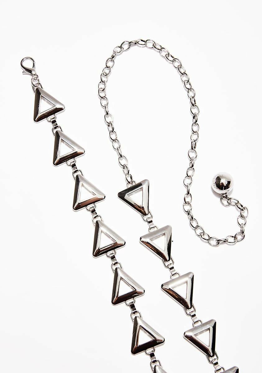 âcuz ya do your thang well, bb. This super sikk silver chain belt has dope triangle detailz wrapped around your lil waist with clasp closure.