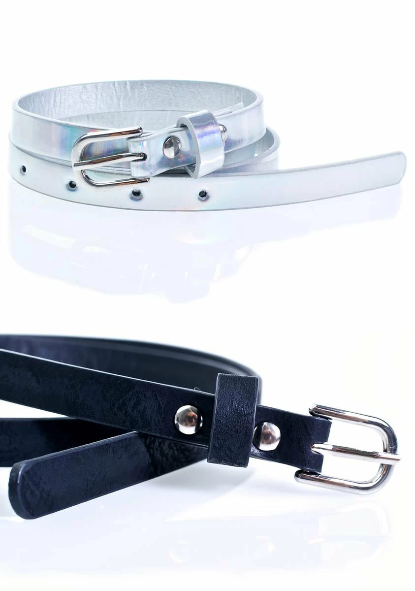 cuz the original is pretty good, but ya like to have the best of both worlds! This dope belt set comes with a thin matte black adjustable buckled belt and a shiny holographic belt so you can mixxx it up a bit.