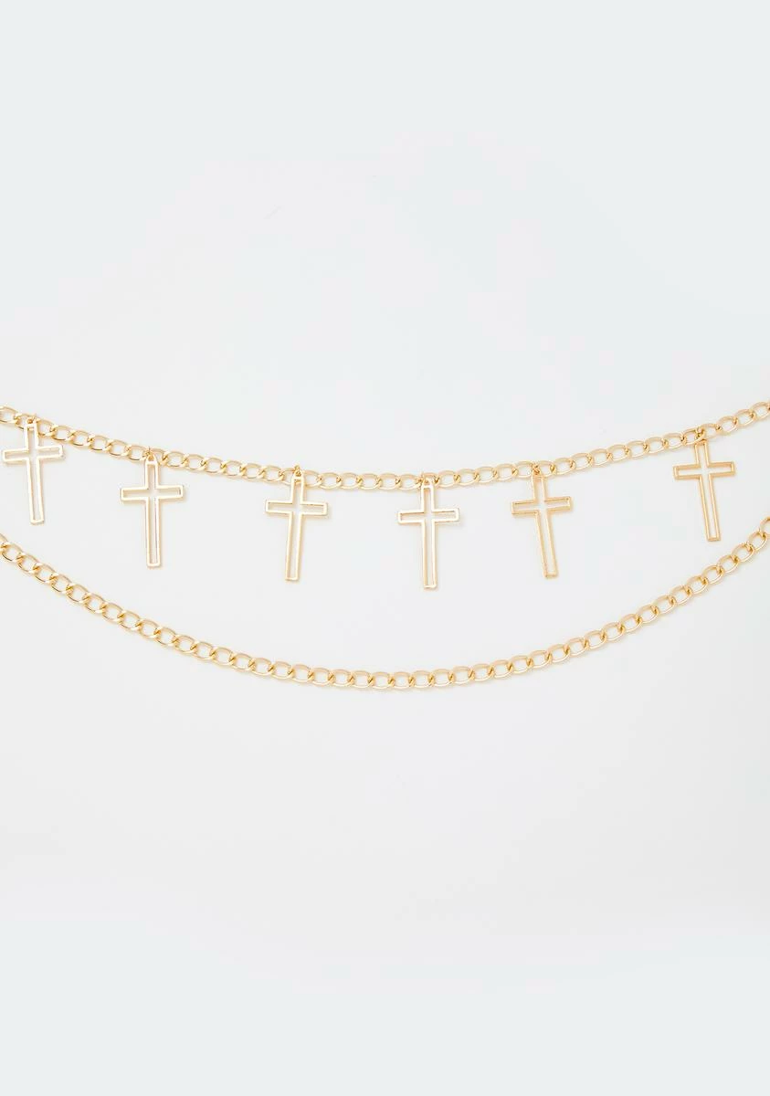 cuz yer a holy hot mess, babe. Youâre purely perfect with this chain belt that has a double strand construction, dangling cross pendants, and an adjustable clasp closure.