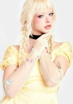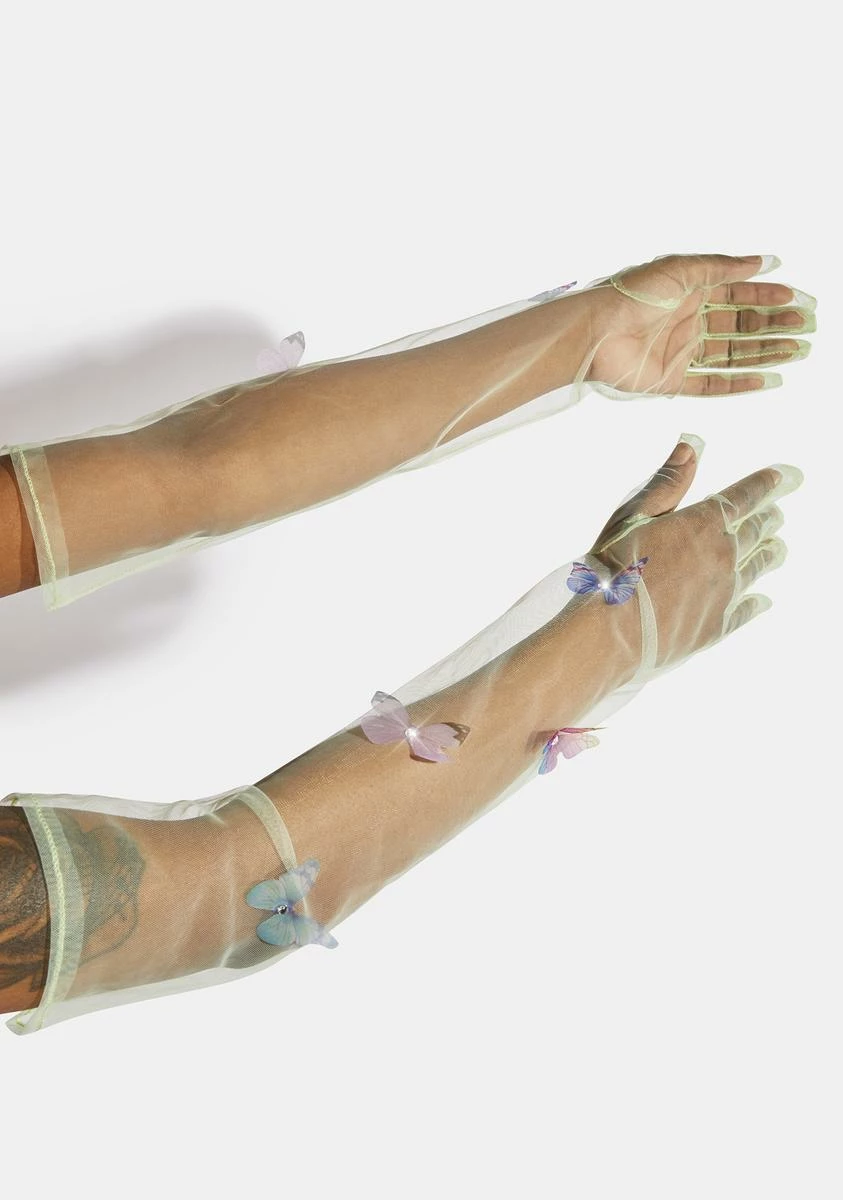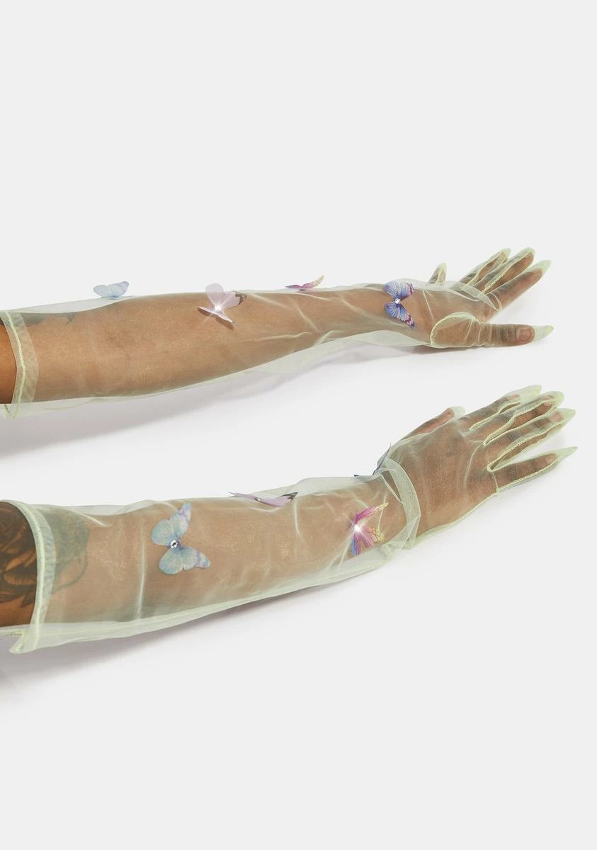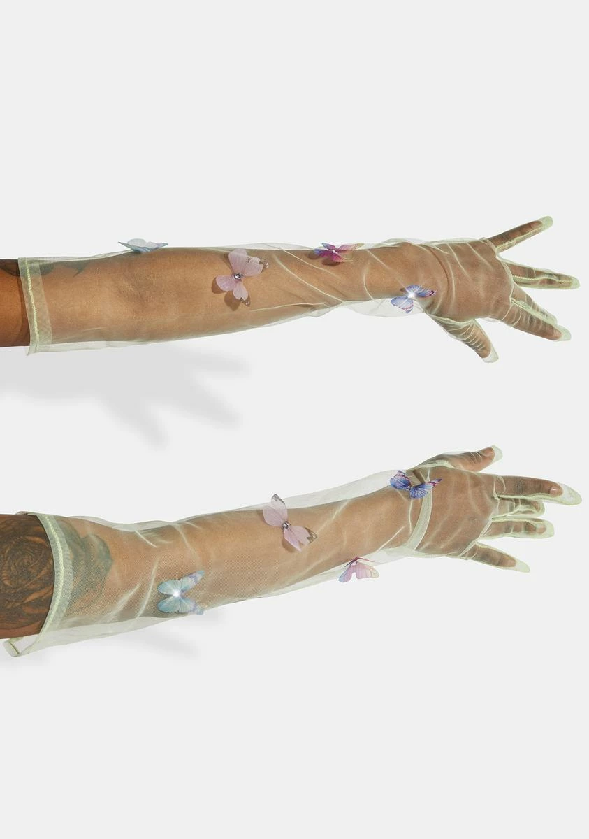 cuz you give us all a flutter. Be the social butterfly you are with these sheer long gloves that have embroidered 3D butterflies all over.