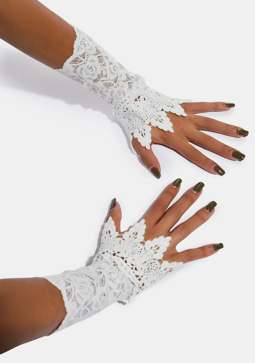 have a lace construction, a contrasting textured lace cuff, and scalloped edges.