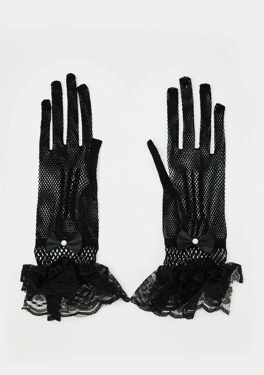 cuz theyâre gonna worship u bb! Let them know youâre worth the sacrifice wearing these fishnet finger gloves with bow design embroidery and frilly lace trim.