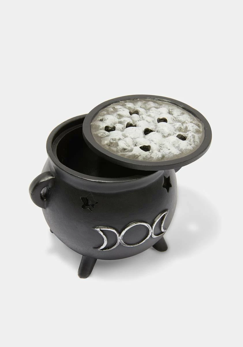 is that the smell of death, despair and ghouls I sense? This cauldron-shaped incense holder has star and moon shapes all over, and a bubbling lid.